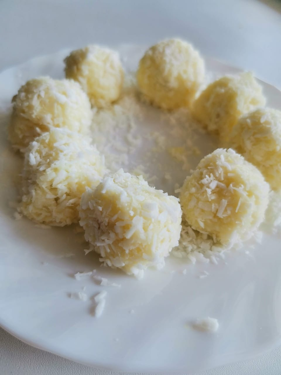 После обваливаем в кокосовой стружке. После убираем в холодильник минимум на 20 минут, лучше на ночь, чтобы масса стабилизировалась, а на утро прекрасная сладость на завтрак.