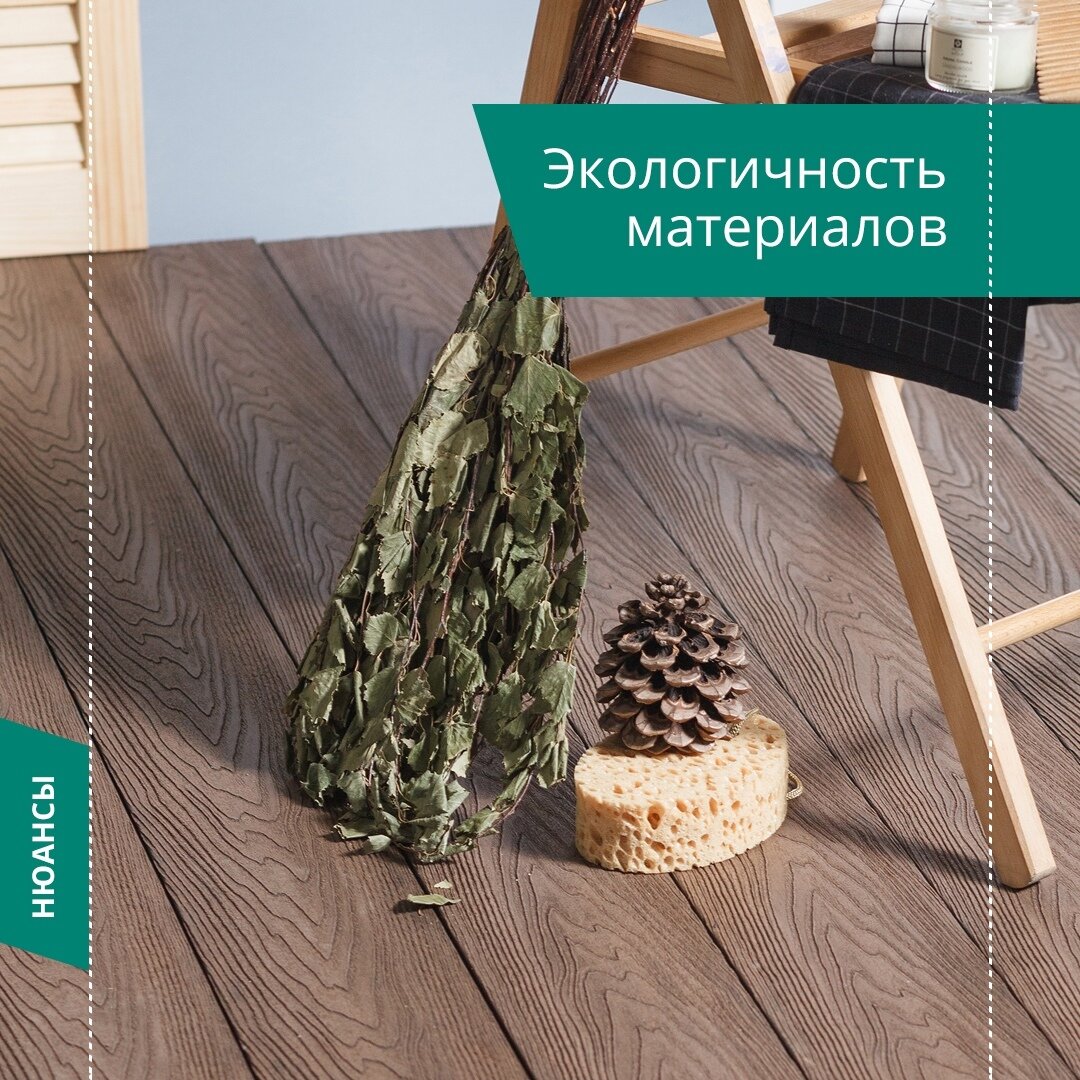 Может ли ДПК навредить здоровью человека или состоянию окружающей среды? Однозначно нет! Древесно-полимерный композит — это экологичный материал, который состоит на 60% из натуральной древесной муки (). Остальные 40% занимают безопасные наполнители, полиэтилен высокой плотности, добавки, пигменты и стабилизаторы ДПК не выделяет в воздух свинец, хлор или фенолформальдегид, — вещества, которые оказывают постоянное вредное воздействие на людей и животных. Если же композит вдруг загорится, то не будет опасного для здоровья дыма. И, что особенно актуально сегодня, при необходимости материал перерабатывается повторно. Такой декинг совмещает в себе практически неотличимый от натурального дерева внешний вид и все самое удачное от полимерных материалов: долговечность, влагостойкость, устойчивость к солнечному свету, защиту от плесени, грибка и насекомых. Практичное решение в скандинавском стиле!