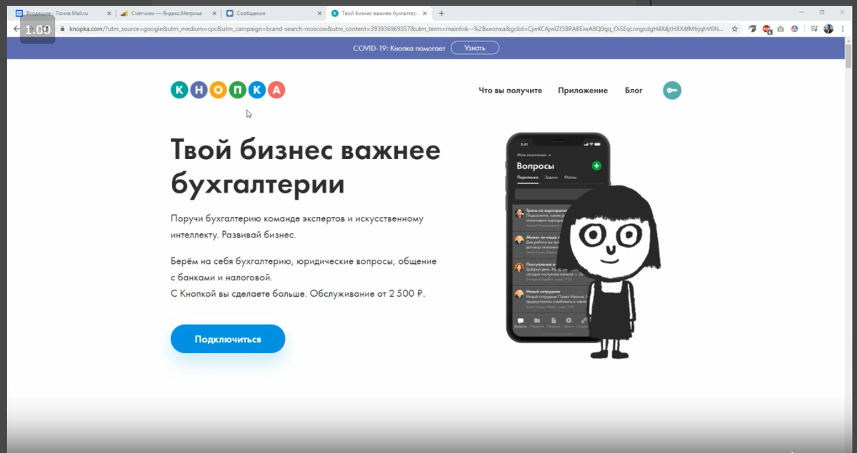 В этом обзоре я проведу разбор сайта КНОПКА по предоставлению бухгалтерских услуг, с точки зрения предпринимателя и маркетолога.