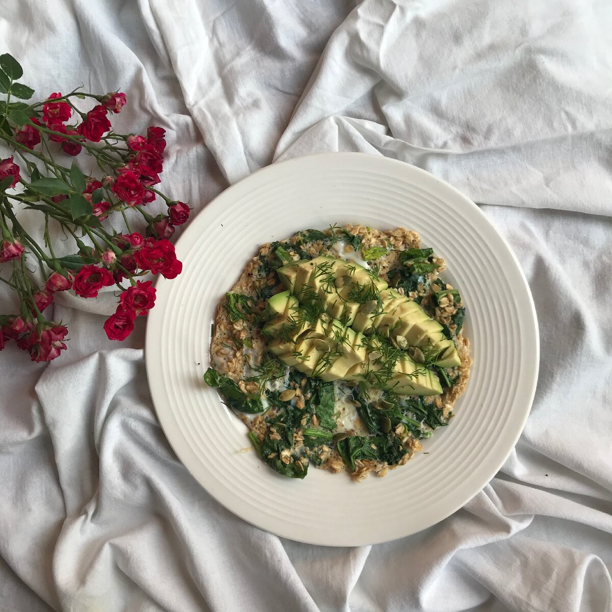 ХОЧЕШЬ, чтоб твоя девушка просыпалась в хорошем настроении?! Тогда этот рецепт для тебя. ОБОЖАЮ: смешиваем яйцо + овсянку+ шпинат и выкладываем на разогретую сковородку. На 2 минуты и вот- идеальный овсяноблин готов. Украшаем ломтиками авокадо... мммм... готово! Можно будить свою королеву и ублажать!