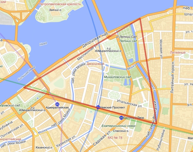Львиная доля блеска бывшей столицы сосредоточена на относительно небольшом участке между НЕВСКИМ проспектом, НЕВОЙ и ФОНТАНКОЙ.