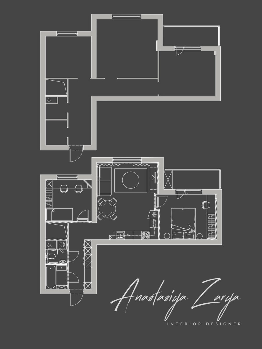 Изначально квартира от застройщика предполагалась как двухкомнатная, но для комфортного проживания заказчиков с двумя детьми необходимо было выделить отдельную детскую, спальню и гостиную. И как во всех проектах начали с перепланировки и там где был бесполезный коридор мы разместили кухню.Всегда стараюсь все пространство задействовать максимально функционально, избегая лишних коридоров. Так же у нас получилась детская небольшая для двоих мальчишек, но очень вместительная, а так же спальня с отдельным рабочим местом, это было обязательным условием. И вот что получилось... Входная зона. Кухня-гостиная Спальня с проектором. Детская для двух мальчиков Ванная комната Спасибо всем за внимание , больше моих работ можно увидеть у меня на странице https://www.instagram.com/zarya_interiors/