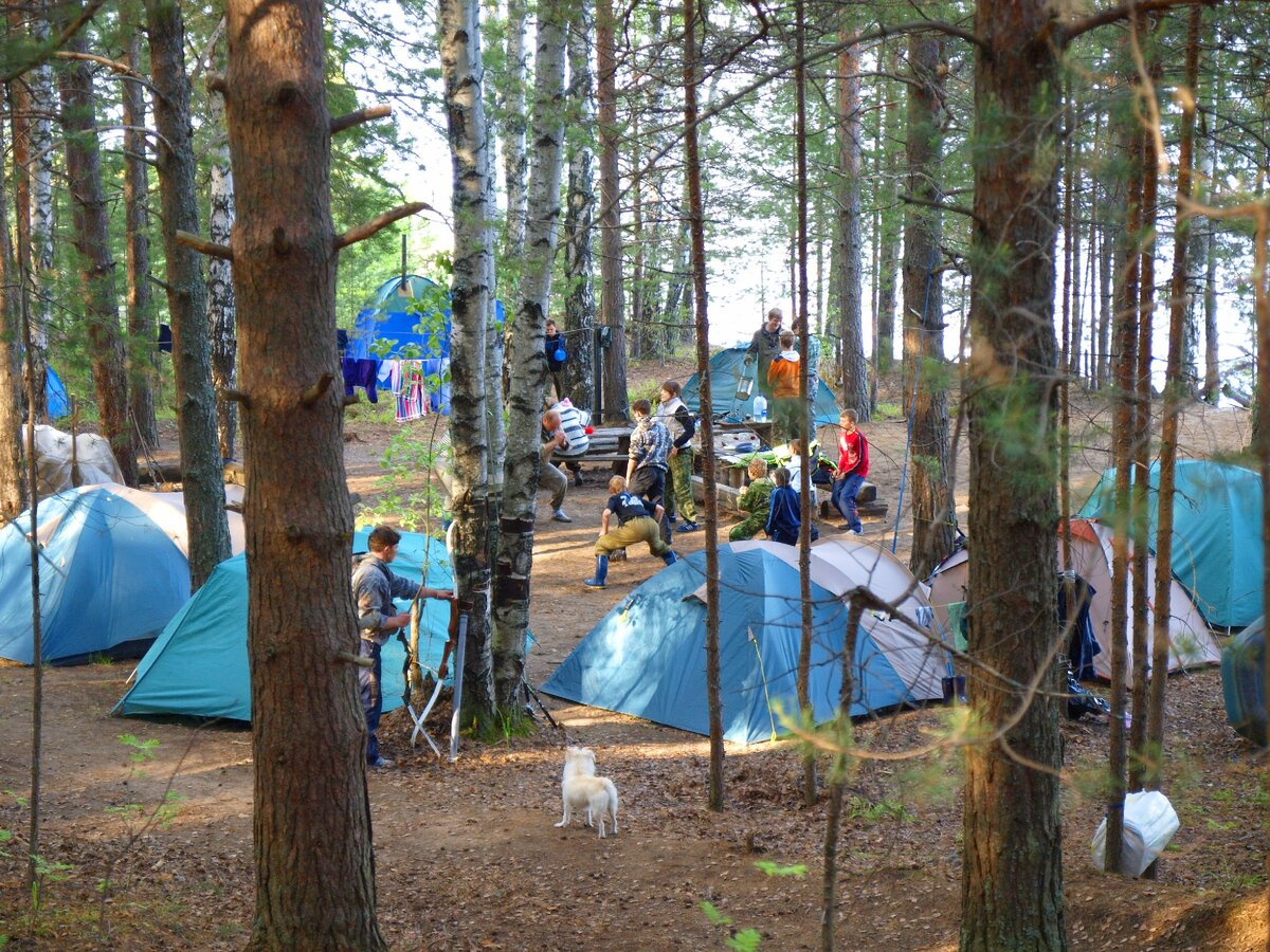 Вот повезло моему сыну с летним отдыхом! Лагерь на берегу реки в сосновом лесу. И не просто лагерь, а ПАЛАТОЧНЫЙ! Все, как у настоящих робинзонов. Жилище построить, территорию обустроить, пища на костре, рыбалка, купание, баня… Утром робинзоны взбодряются зарядкой и пробежкой. Любимый тренер доводит «взбодрение» до нужной кондиции. Завтрак в хорошо обустроенном месте – самодельные деревянные столы и лавки. Брутальненько так (это уже мои чисто дизайнерские восторги). А теперь по плану – уборка. Порядочный Робинзон должен ежедневно наводить порядок на обживаемой территории. Шишки, хвоя – метлой в лес. Пришло время для лесных приключений. И здесь надо быть готовым ко всему - дикие хищные звери, кровожадные мутанты… Правда, они в наших лесах не водятся. Наверное, робинзонов боятся. А потому что робинзоны наши ловкие, смелые, проворные. Еще бы! Такие тренировки! Вот это и есть настоящая жизнь!