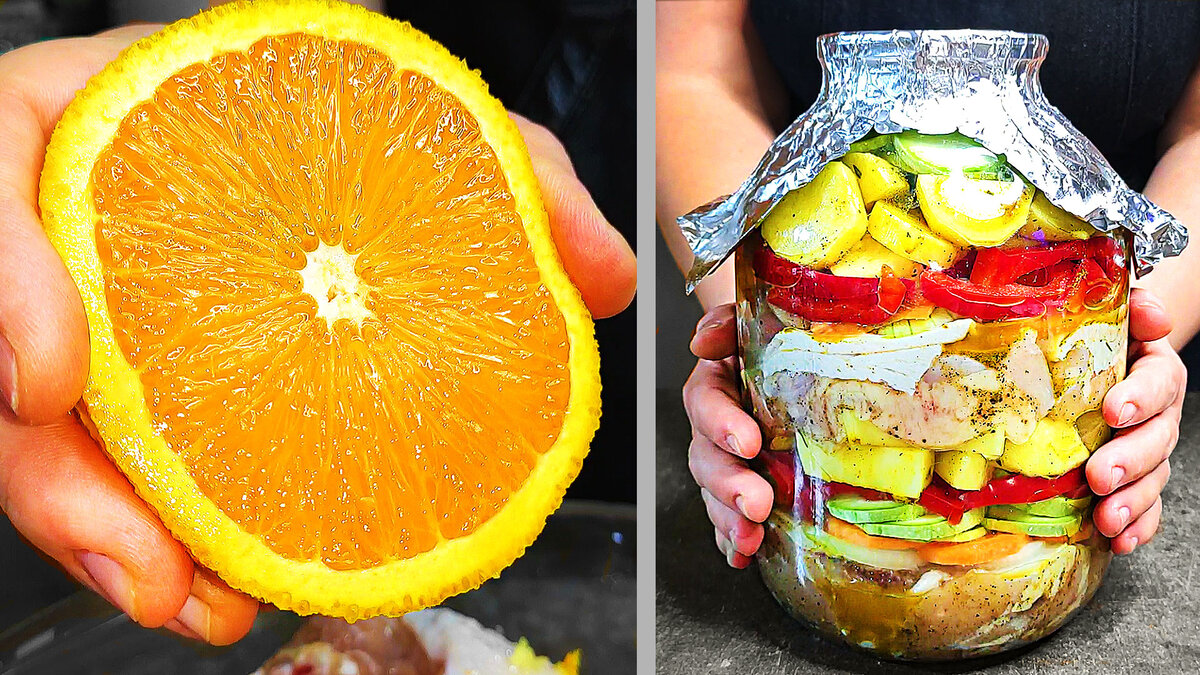 Куриные бедра разрезаем пополам, перекладываем в миску. Всыпаем куриную приправу с паприкой и куркумой , соль, черный перец, перемешать и отставить в сторонку. Картошку очищаем и нарезаем на кусочки, слегка посолить , поперчить и добавить любую приправу по своему вкусу. Кабачок нарезаем на кусочки и слегка посолить, лук также нарезаем на кусочки и посолить. Морковь и сладкий перец я не солю, собираем банку, на дно выкладываем курицу, нарезанный лук, морковь, кабачки, сладкий перец, картошку и дальше вс слои повторить. Накрываем фольгой, делаем зубочисткой дырочки и отправляем в разогретую духовку до 180 градусов , выпекаем 1ч30мин - 1ч50мин.
