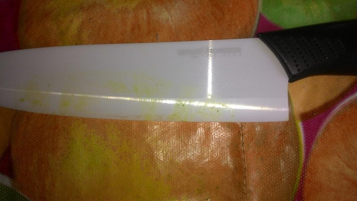 Очищаю белые керамические ножи до блеска содой. Фото "до" и "после"