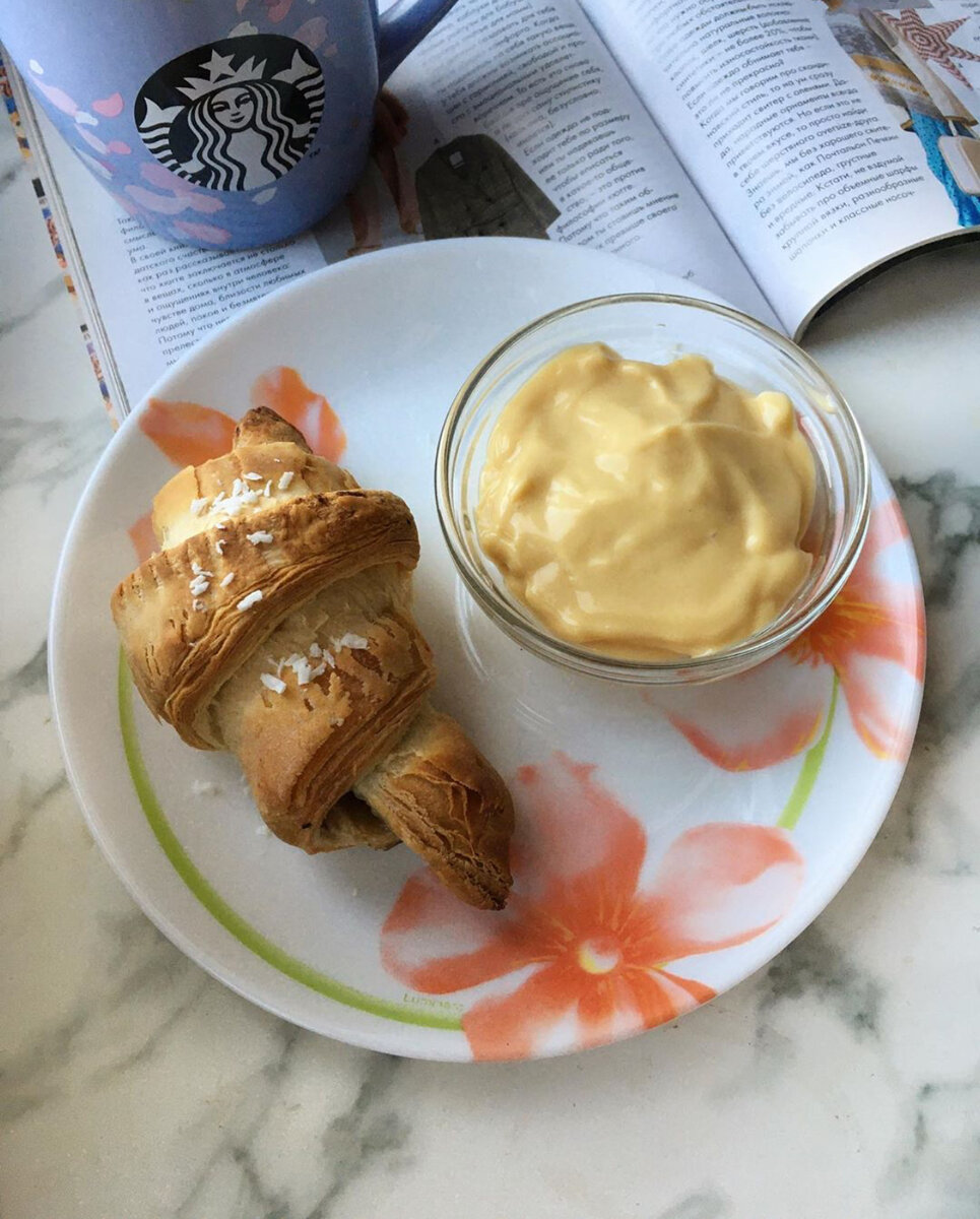 Сейчас будет САМЫЙ легкий рецепт, который Вы только слышали Готовы? И так, что нам нужно для круассанов: 🥐Слоеное тесто 🥐Начинка (любая, я добавляла шоколад и банан) И это ВСЕ, что нужно!!! Теперь просто готовим: Делим тесто на треугольники (размер выбираете сами). Добавляем начинку, сворачиваем. Выпекаем 15 минут при температуре 180 Вот и всё! У нас получились вкусные круассаны 🥐 Приятного аппетита🎉🎉🎉