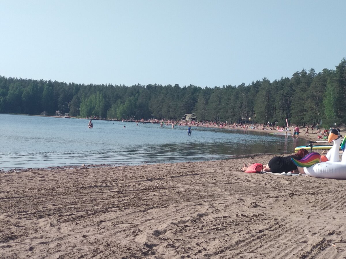 Вообще хочется сказать, что финские пляжи - одно удовольствие. Тот, что изображен на картинке выше и ниже находится на берегу озера. Вода абсолютно прозрачная (фото в комментариях к статье), даже не смотря на то, что толпы людей баламутят ее. Песок чистый, есть кабинки для переодевания, туалеты.