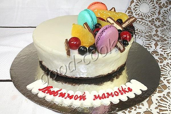 Крошки печенья выложить в форму, разровнять и примять, образуя плотный корж.