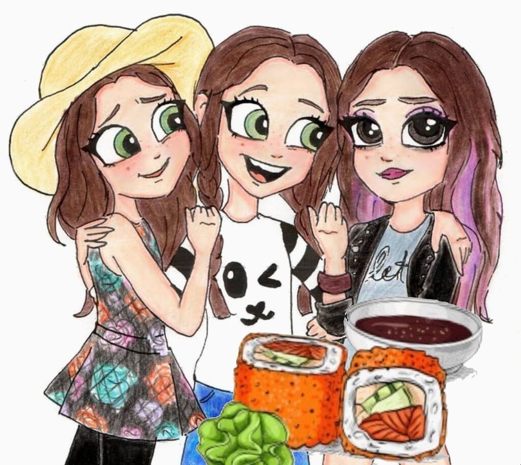 - А у Маши мало денег в копилке оказалось, а она думала, что их больше. И нам не хватило. И тогда она так своей маме звонит и говорит: «Мама, а тут нам с Дашей и Глашей деньги нужны, чтобы за суши, тьфу, за роллы заплатить». И мы тогда побежали к ее маме.