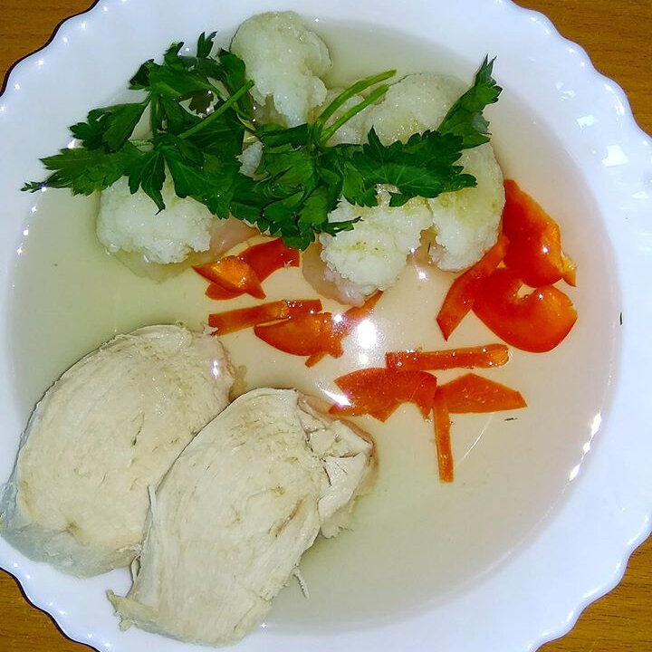 ✅ Зелень по вкусу. В холодную воду кладём грудку, доводим до кипения (не кипятить!). Сливаем бульон, промываем грудку в холодной воде. Заливаем снова водой, варим 20 минут после закипания на слабом огне. Грудку вынимаем. Добавляем в бульон цветную капусту и перец, доводим до кипения, и варим на слабом огне до готовности капусты (кто как любит). Солим. При подаче добавляем нарезанную грудку и зелень. Всем приятного аппетита 😊 Больше общения и рецептов - в группе "Рецепты для диабетиков" в Facebook, или в группе ВКонтакте! Рецепт на странице в Facebook Автор рецепта - Оксана Щеголькова