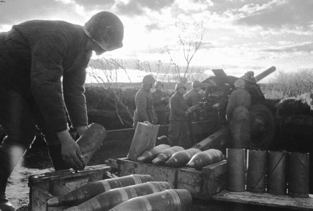 В течение 16 июня на фронте существенных изменений не произошло. Нашей авиацией в Черном море потоплена немецкая подводная лодка, в Баренцевом море потоплены танкер и транспорт противника. *** На Западном фронте наши части истребили до 400 немецких солдат и офицеров. Огнем артиллерии уничтожено 3 орудия, минометная батарея, 5 пулеметов и огнемет противника. На одном участке разведывательный отряд Н-ской части ворвался во вражеские траншеи и уничтожил до 70 гитлеровцев. Захватив пленных, разведчики вернулись в свою часть. В воздушном бою наши летчики сбили 3 немецких самолета. *** В районе Жиздры противник силою до батальона пехоты пытался вести разведку боем. Вначале гитлеровцам удалось потеснить наше боевое охранение и ворваться в передовые траншеи. Бойцы Н-ской части контрударом вышибли немцев из... Полная версия статьи: https://smolgazeta.ru/svodki-sovinformbyuro/76601-ot-sovetskogo-informbyuro-16-iyunya-1943-goda.html «Красная звезда», №141 (5512), 17 июня 1943 г. На фото: расчет