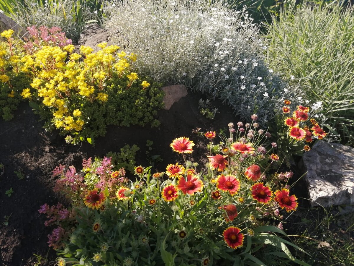 Добрый день! Лето цветёт всеми красками!!! Цветники пестрят всевозможными цветами. Мой самодельный цветник с небольшой горкой и камнями, с почвопокровными цветами и не только на фото Почвопокровные цветы обрамляют тропинку из камней Также есть небольшой цветник, сделанный из камня, посреди сада Цветы петунии не все распустились, но лето впереди, ждём. Фотографии периодически буду выставлять.