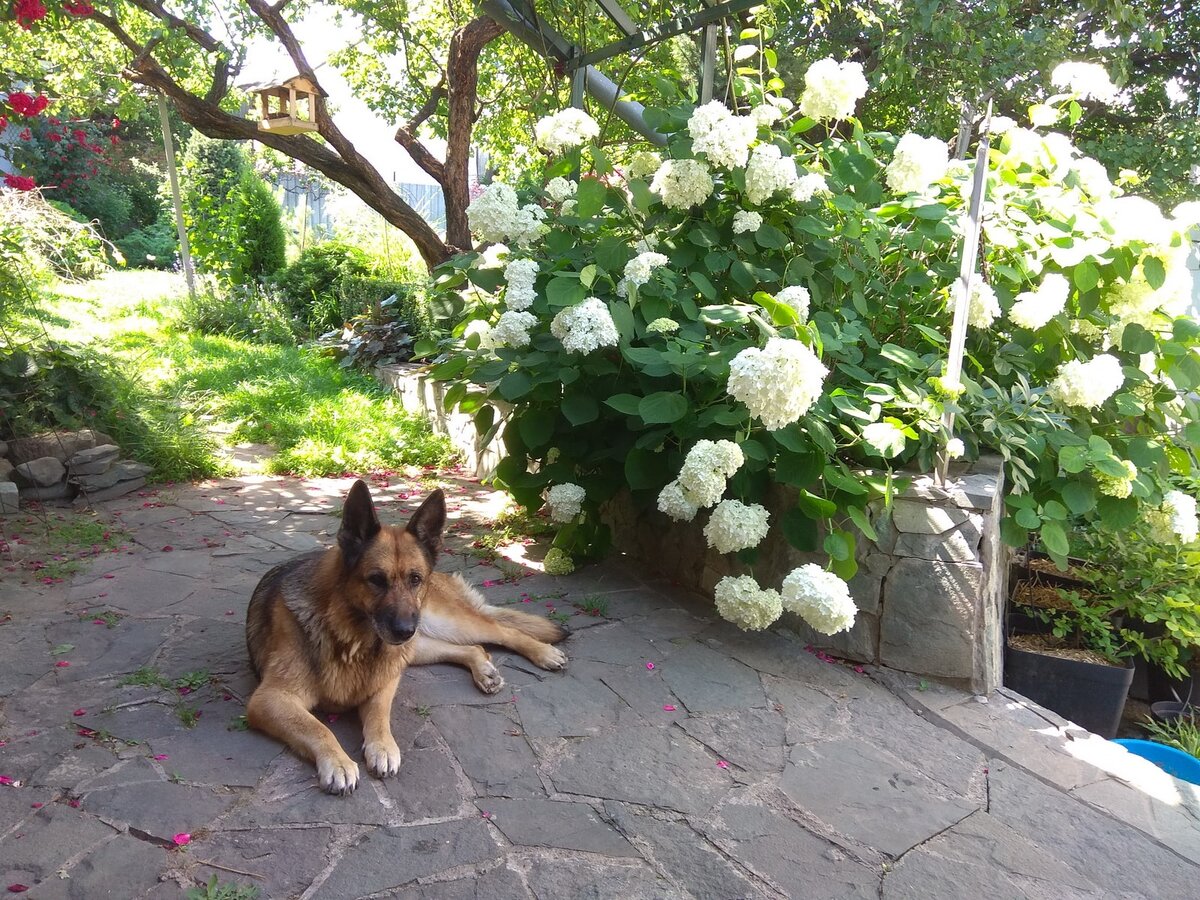 Если пустить ленту капельного полива с ежедневным автополивом, то можно высадить гортензию даже за оградой. При этом не будет опасности отравления детишек, которые любят рвать цветы, - она не ядовита (в отличие от клещевины и других растений, которые любят сажать у калитки...)