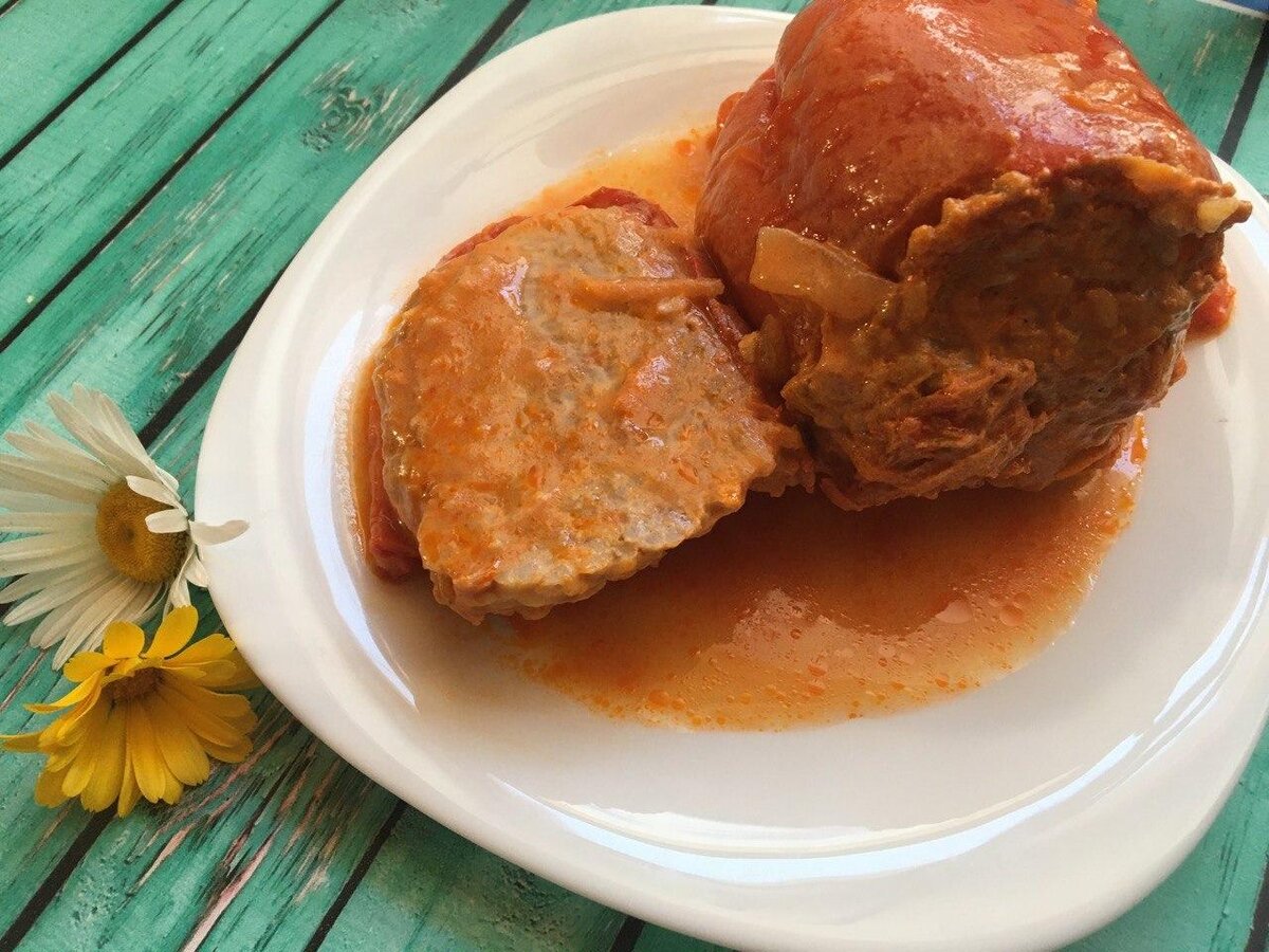 Рецепт Ингредиенты : Перец - 7 больших шт. Рис - 400 гр. Фарш - 1.2 кг.( свининой + куриный) Морковь - 3 шт. Лук -2шт. Соль, перец Сметана 300 мл. Том. паста 1 б. Приготовление : Промыть рис, отварить до полуготовности. Очистить перцы от семян. Промыть. Нарезать лук, натереть морковь. Обжарить на растительном масле. Смешать фарш, обжаренный лук и морковь. Добавить Соль, перец, рис. Все хорошо перемешать. Нафаршировать перцы. Выложить в кастрюлю ( у меня в мультиварке). Смешать томатную пасту и сметану, добавить 1,5 литра воды ( чтобы наполовину скрывали перцы. Ставим на медленный огонь, либо в мультиварке на режиме выпечка 45 мин. Приятного аппетита 😊