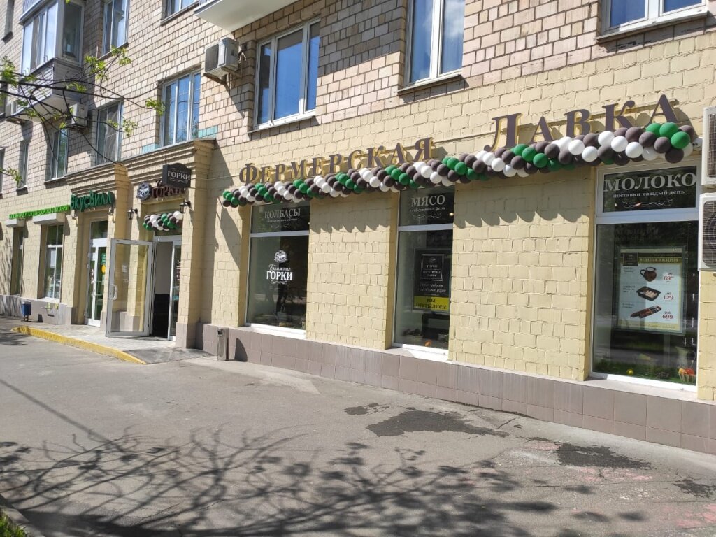 Фермерская лавка «Ближние Горки» оформлена в полюбившемся москвичам фирменном стиле. Это магазин нового мини-формата с сокращенной зоной кафе. Здесь можно приобрести всегда свежую и вкусную мясную, колбасную и молочную продукцию, изготовленную на высокотехнологичных предп