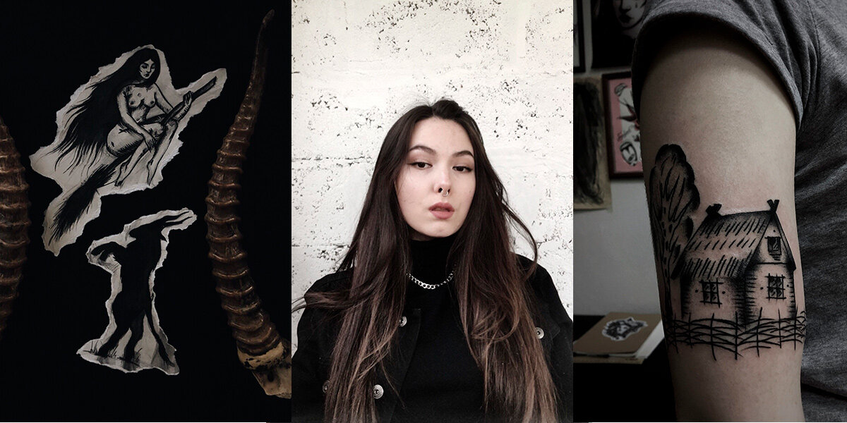 Около трех лет назад Настя погрузилась в тату окончательно, смешав в своей технике трад (то есть классический рисунок с развернутым сюжетом), графику и реализм. Сюжетные элементы тоже оформились быстро — это мифические персонажи, иногда даже пугающие. Все то, чего дети наших прадедов боялись. Черти, ведьмы и прочая ворожба, которая, вопреки упрекам многих, никакого отношения к сатанизму не имеет: