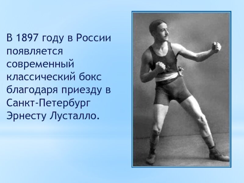 Бокс, как часть спортивной культуры в каждой стране, развивался по-разному. Некоторые страны, такие как Англия и США, практически с момента зарождения этого вида спорта стали являть на свет прекрасных боксёров. В СССР же ситуация сложилась немного иначе. К нам бокс приехал из Парижа в лице известного тренера и чемпиона Э. Лусталло. В 1887 году он начал преподавать эту дисциплину в Санкт-Петербурге. Немного позже, в 1894 году, открывается первая боксёрская школа в Москве, которая и кладёт начало развитию этого вида спорта в наших широтах. Своим появлением данное заведение обязано офицеру гвардии Кистеру. Надо отметить, что с момента появления бокса у нас, он моментально стал пользоваться огромной популярностью. Впрочем, это не удивительно, так как кулачные бои на Руси считаются одной из старейших забав, без которой не обходился ни один праздник, а иногда и судебное разбирательство. После открытия школы в Москве, её аналоги стали плодиться по территории СССР со скоростью света. Открыв