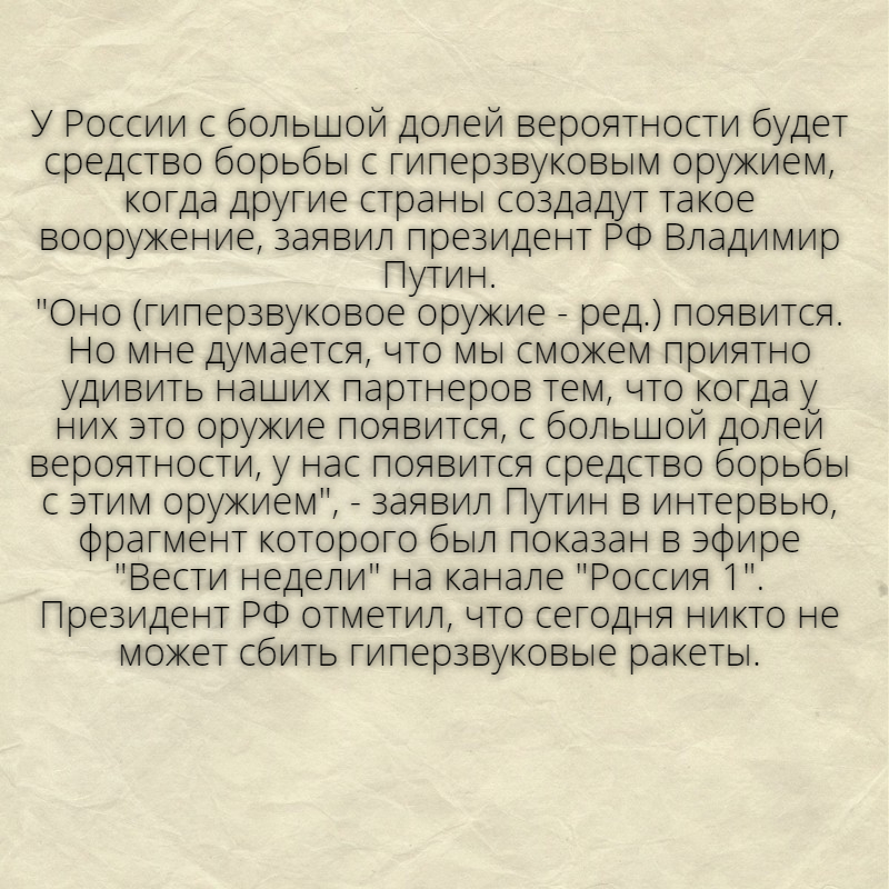 Путин анонсировал появление у страны контргиперзвукового оружия