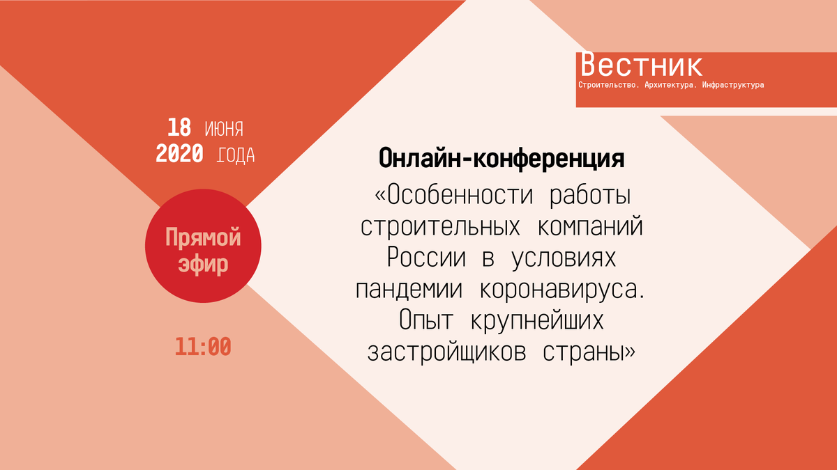 МИД «ЕвроМедиа» проведет онлайн-конференцию, посвященную особенностям работы строительных компаний России в условиях пандемии коронавируса В четверг, 18 июня, в 11.00 редакция отраслевого журнала «Вестник. Строительство. Архитектура. Инфраструктура», выпускаемого международным издательским домом «ЕвроМедиа», проведет онлайн-конференцию «Особенности работы строительных компаний России в условиях пандемии коронавируса. Опыт крупнейших застройщиков страны» (на платформе Zoom). В рамках конференции состоится презентация эксклюзивного исследования «Топ-100 крупнейших застройщиков РФ», подготовленного аналитическим центром МИД «ЕвроМедиа». Для обсуждения вынесены следующие вопросы: Отдельно состоится обсуждение темы реализации общенационального плана действий, обеспечивающих восстановление занятости и доходов населения, рост экономики и долгосрочные структурные изменения. Этот документ, представленный 31 мая премьер-министром РФ Михаилом Мишустиным и одобренный президентом РФ Владимиром