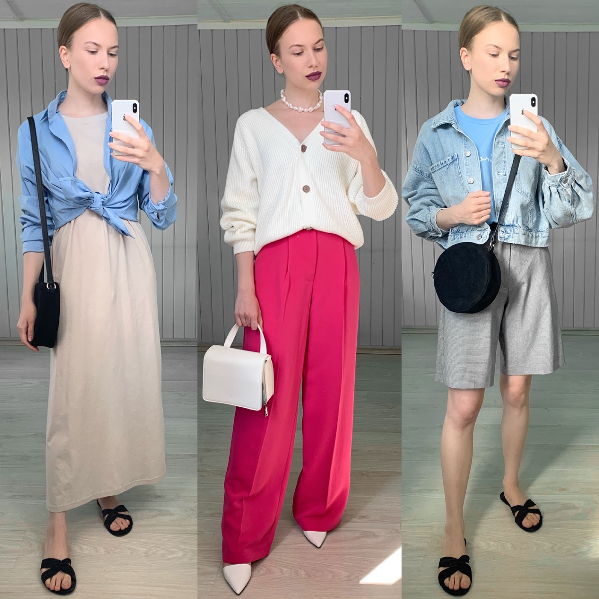 ✔️В первую очередь, при выборе комплекта опирайтесь конечно же на погоду в вашем регионе☀️☔️Например, нас уральское лето не особо радует жарой и солнцем, поэтому мы можем позволить себе накинуть хлопковый кардиган или джинсовку🤷♀️Если же ваше лето душное и жаркое, то замените слои одежды на интересные аксессуары (цепи, браслеты, кольца, шляпы, платки, ободки, яркий чехол для телефона и тд)😉