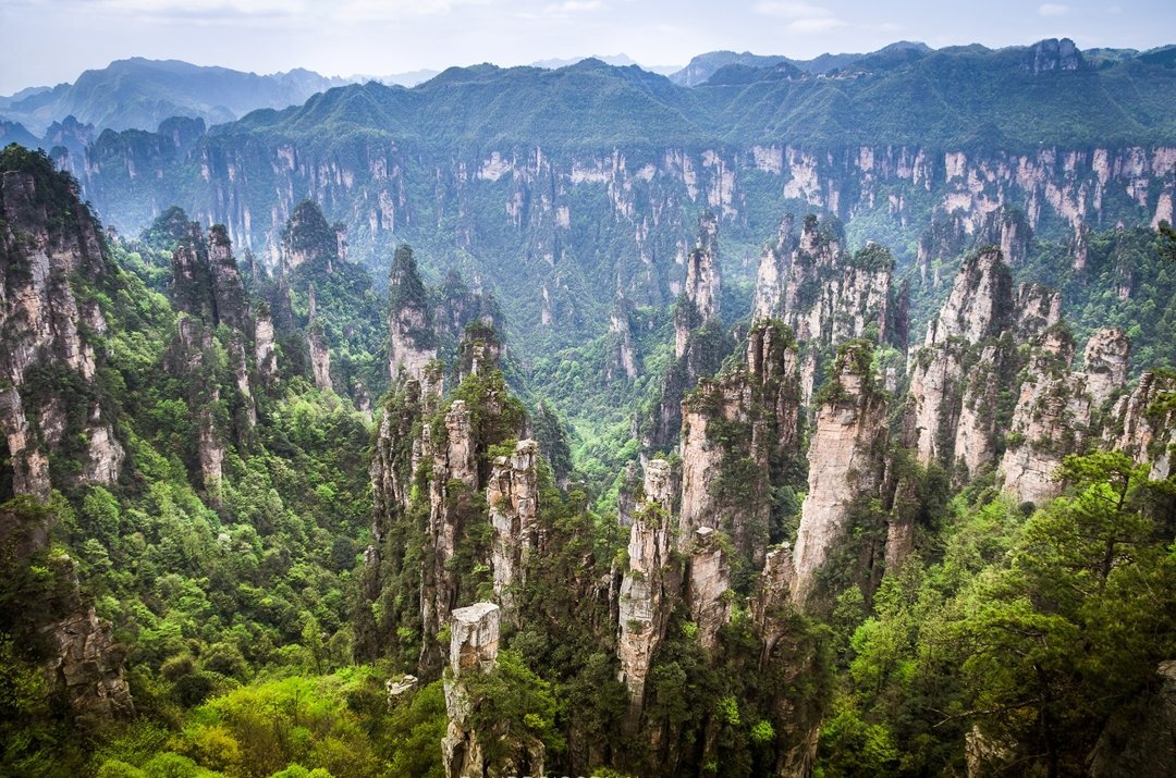 Увидев эти горы невозможно поверить в то, что это еще одно великолепное создание природы. Здесь из земли вырастают необычные горные стержни, которые будто связывают землю и небо. Располагаются парящие горы в Китае, являясь частью национального парка Чжанцзяцзе, и называются Улинъюань. Скалы привораживают и поражают с первого взгляда. Свое название гора Тяньцзы получила от прозвища человека по имени Сян Дакунь, племени Ян, который давным-давно возглавил в этих краях восстание местных фермеров и назвал себя «Сыном неба». Всего здесь более 2000 горных столбов, высота которых в среднем достигает до 1250 метров. Начало формироваться это чудо света более 3 млн. лет назад. Когда-то здесь был только тропический лес, который находится здесь до сих пор между данными столбами. На самом деле это скалистые пики-столбы, созданные из кварца и песчаника, и превратившиеся в настоящее чудо природы под воздействием эрозийных процессов и выветривания. Самый высокий пик – гора Дюпенг, которая уходит в н