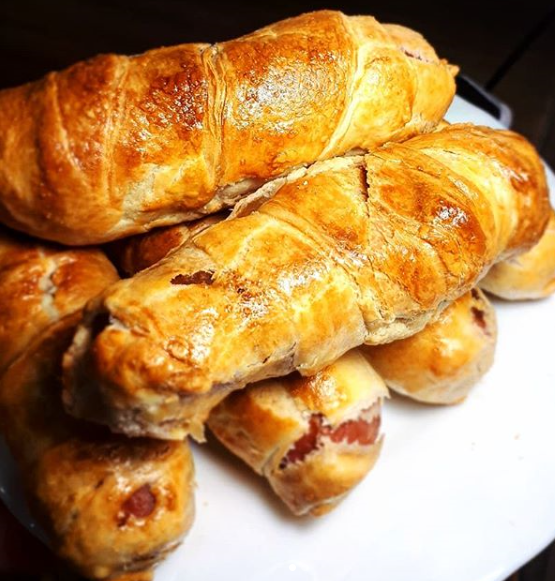 1. Тесто раскатываем и режем на количество сосисок