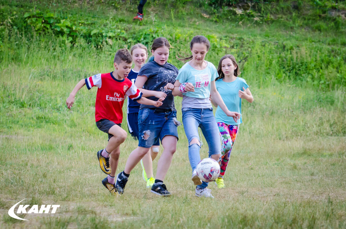 Занятия футболом проводятся на свежем воздухе, для плохой погоды есть крытый зал. Футбол дает достаточную физическую нагрузку, развивает в детях скорость и выносливость, позволяет проявить лидерские качества и выплеснуть энергию. Занятия состоят из разминки, основной и заключительной частей. Основные направления работы: В дополнение к основным активностям дети посещают мастер-классы — батут, бильярд, веревочный парк, волейбол, бег, гимнастика. Записывайтесь — https://taplink.cc/sk_kant