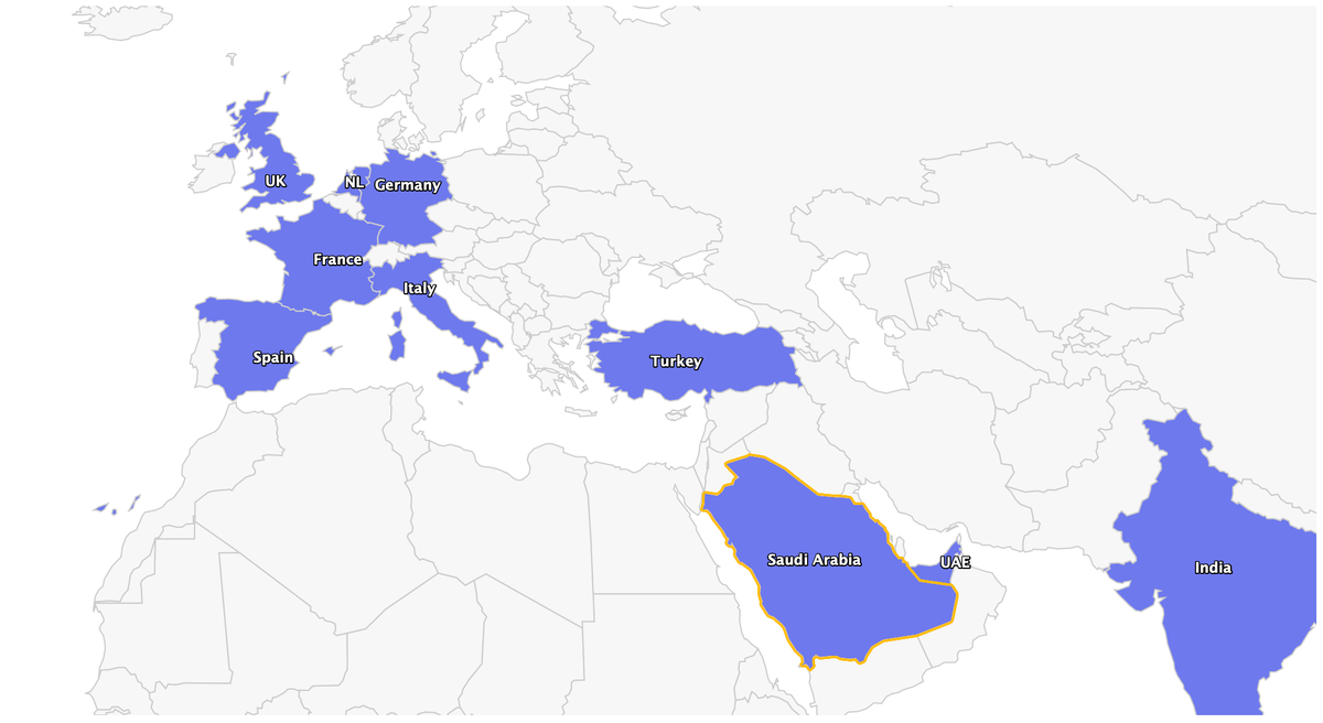 Сегодня Амазон запустился на всей территории Саудовской Аравии.