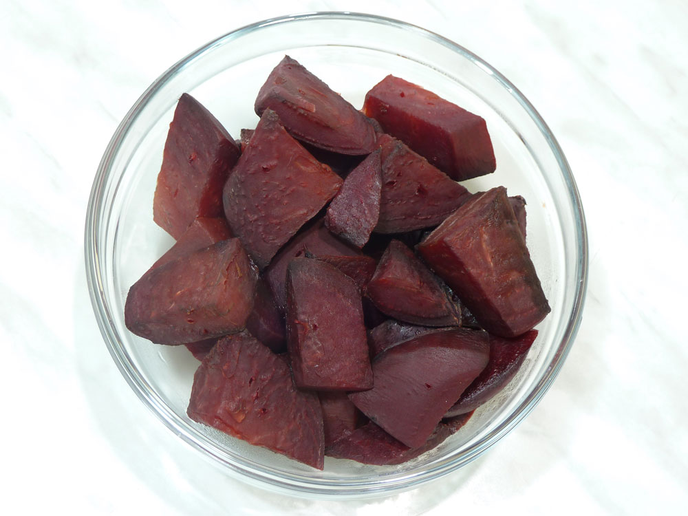 Запекать свеклу можно как очищенную, так и с кожурой. Целиком или кусочками. В данном случае я расскажу о запекании крупной свеклы весом 700 гр. Целиком такой корнеплод пришлось бы запекать долго. Поэтому я его очистила от кожуры. Разрезала на средние куски (мельчить не стои