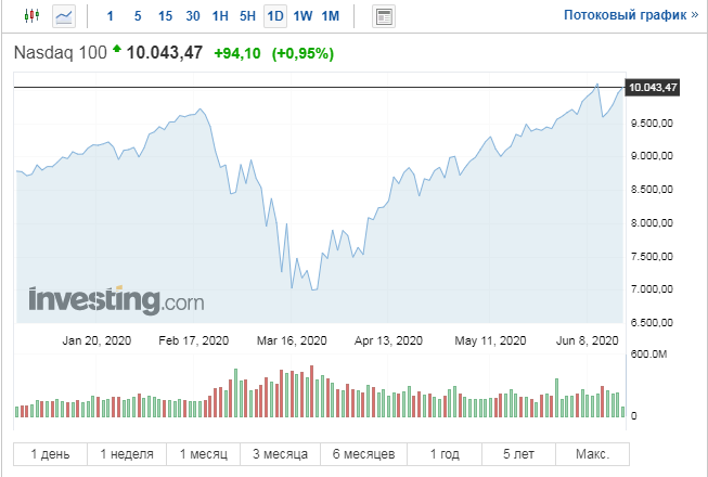 Все мы были свидетелями сумасшедшего обвала фондовых рынков в марте на 40%. После того прошло 3 месяца и рынки бьют свои новые вершины. К примеру Nasdaq (индекс 100 крупнейших компаний не финансового сектора) - уже побил свои февральские максимумы на 5% и продолжает расти. S&P 500 - не достиг своих максимумов, осталось 7-10%. А индекс Российских акций RTS - отыграл всего лишь половину падения (все из-за девальвации рубля и снова инвесторам вкладывающим, только в Россию, не повезло. Да и вообще индекс РТС на горизонте 20 лет потерял 11%, даже в нулях, вот вам долгосрочное инвестирование. Но если брать дивиденды, то плюс небольшой есть. Почему же мы видим рост рынков, хотя даже еще не вернулись к нормальной жизни? Агрумент №1. Появились первые реальные сценарии развития событий. Страны в мире потихоньку выходят из карантина, а главы заявляют, что даже при второй волне коронавируса домой сажать людей не будут. Иначе экономика точно станет и ничем её не сдвинешь. Аргумент №2. Вера в