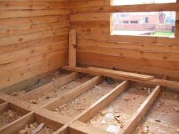 Для чернового покрытия используется необрезная доска 25 мм. Их набивают вплотную на лаги, уложенные поверх кирпичные столбы и частичной опорой на фундамент. Стараться подгонять их плотно необязательно, все щели закроет чистовое покрытие. Здесь уже нужна ровная обрезная доска. Ее выбор определяет вариант устройства слива. Если он будет в определенном месте (под склон), то доска должна быть с пазами и прилегать максимально плотно. При установке внутреннего слива, оставляют небольшие зазоры для отвода жидкости.Пол в бане должен быть теплым, даже без установки систем подогрева. Этого можно добиться дополнительной засыпкой керамзита или песка в подпольное пространство под черновое покрытие. Вариант утеплительной засыпки выбирается согласно типу водоотведения в бане. В некоторых случаях это просто невозможно сделать. Такой вариант больше используется при организации одноотводного слива. Невозможность диктуется водоотведением под всем половым покрытием.