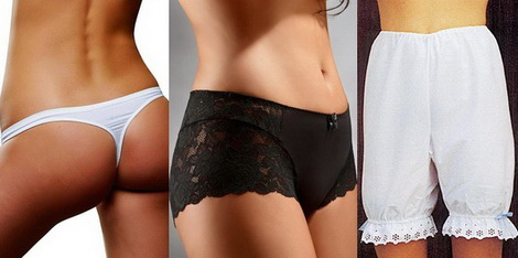Виды женских трусов. Рассмотрим все разновидности и виды женских трусов. Женское нижнее белье способно существенно повлиять и изменить любую женщину. Например, надев стильный комплект сексуального белья, вы будете чувствовать себя самой обольстительной и очаровательной кокеткой. Однако далеко не все женщины знают и разбираются в разновидностях и видах женских трусов, что ограничивает их выбор и личные предпочтения. Панталоны. Женские трусы, полностью закрывающие бедра до линии колен. Шьются из эластичной, тонкой или стрейчевой ткани. Можно встретить утепленные, утягивающие, бесшовные, облегающие, свободные и многие другие разновидности панталонов. Слипы. Самая популярная и удобная модель для повседневной носки. Отличительная особенность женских трусов слипов – вырез на середине линии бедра. Стандартная резинка, расположенная на талии или бедрах и полностью закрытая попа. Боксеры, шорты. Трусы похожи на очень короткие шорты, могут, как облегать, так и быть свободными. Шьются из самого р