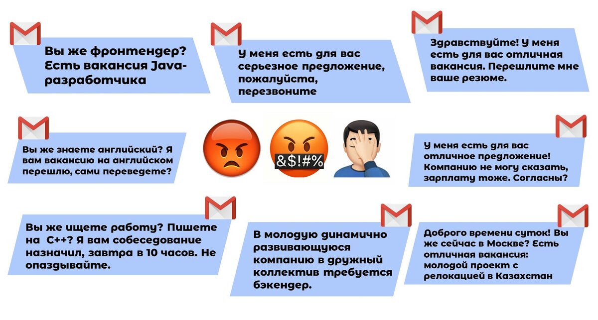 Резюмируем: у нас есть токсичный рынок, на котором вопрос поиска работы вызывает боль у всех. Кандидатам шлют сообщения на почту и в Телеграм, пристают на митапах и звонят (иногда ночью), а работу можно получить, если написать божественное резюме и пройдя 13 этапов собеседования.