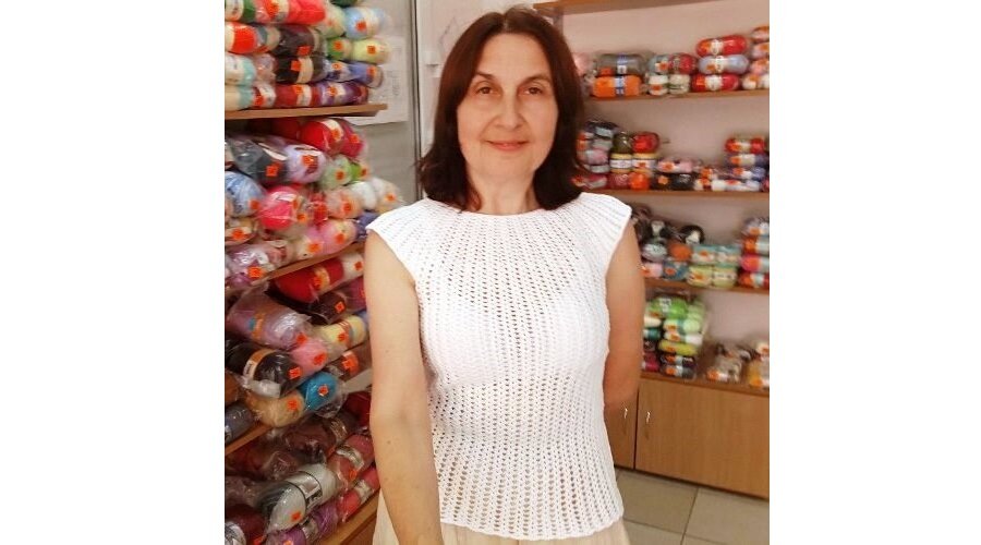 Топ Веера получил название из-за ажурного узора. Если вы умеете вязать столбики с накидом и воздушные петли крючком, вы легко свяжите такой топ.