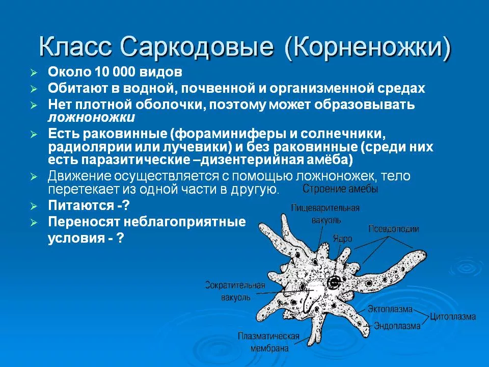 - Передвигаются и захватывают пищу с помощью ложноножек (фагоцитозом)