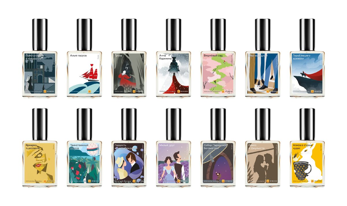 Крупнейший книжный сервис по подписке MyBook и «Библиотека ароматов», представитель бренда Demeter в России, создали коллекцию ароматов MyBook Perfumes по мотивам классических произведений, которые пользовались наибольшей популярностью у россиян за все время существования сервиса. В нее вошли 14 парфюмерных композиций, семь из которых посвящены известным книгам отечественных писателей и ровно столько же — зарубежным. Рассказываем о самых интересных по нашему мнению ароматах. «Анна Каренина» Аромат по одноименному проведению Льва Толстого перенесет вас в заснеженную Москву — как раз туда, где начинается роман. Вдохновением при создании аромата послужил свежий, легкий, еле уловимый запах снега. "Это чувствуется в воздухе, это чувствуется сердцем". «Мертвые души» Композиция по одноименной поэме Николая Гоголя строится на идее о мертвых душах живых людей. За основу аромата взяли ноты, которые можно "услышать" в похоронном бюро — смесь классических белых цветов: лилий, гвоздик, гладиол