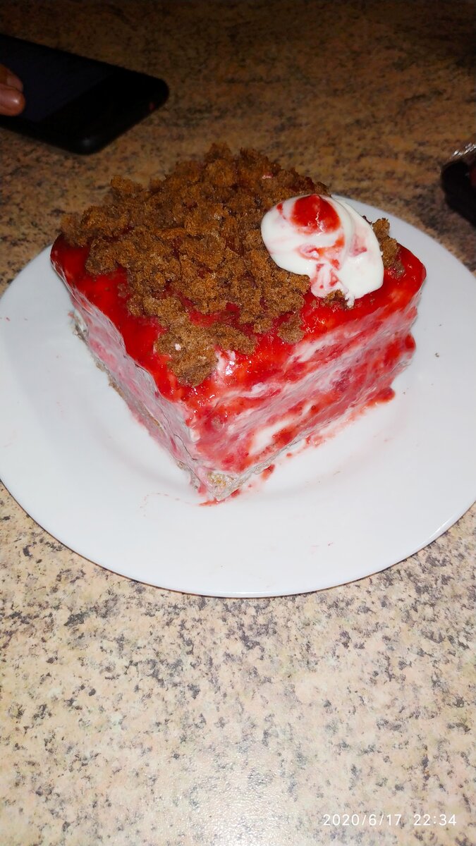 Тесто: Яйцо 2 шт. Крахмал кукурузный 1 ст.л. Какао 1 ст.л. Вода 2 ст.л. Сахзам по вкусу Разрыхлитель 3 гр. Овсяная мука 2 ст.л. Крем: Мягкий творог 130 гр. Клубника 4 шт. Сироп без сахара ванильный Отделить белки от желтков.В желтки добавляем крахмал, воду,какао, разрыхлитель и овсяную муку перемешиваем! Белки взбиваем и добавляем сахзам постепенно,взбиваем до глянцевых пиков!Смесь аккуратно вводим в основную часть теста,перемешиваем снизу вверх.На противень выкладываем пергамент и на него выкладываем бисквитное тесто,формируем прямоугольник.Выпекаем 18 минут при 180С°. Клубнику перебить блендером (у меня была замороженная).Творожок перемешать с сиропом.Остудить корж разрезать на 4 части и промазать творожком и клубникой!ставила на ночь в холодильник! Приятного аппетита!!!