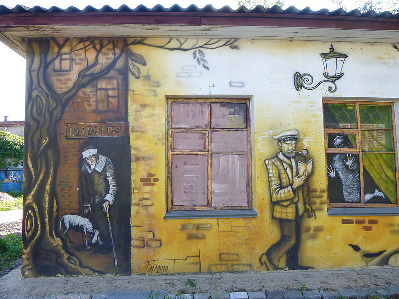 Уличное художество нравится не всем. Некоторые считают граффити на стенах безвкусной мазней, а представители региональных консервативно настроенных властей сразу же спешат замазать яркие рисунки серыми квадратами. Но есть одно место в нашей стране, где уличное искусство ценят и уважают, а оно, в свою очередь, преображает окружающие пейзажи. Подмосковный городок Дубна прославился в 70-х годах прошлого столетия, когда здесь начали заниматься ядерной физикой. С 2001 года Дубна имеет громкий статус наукограда, хотя здесь проживает всего около 70 тысяч человек. Скорее всего, Дубна так бы и осталась неприметным подмосковным городков, если бы не один человек, который прославил свою малую родину на всю Россию. Зовут его Боб Макар и он уличный художник. Боб Макар и его картины Рисунки Бориса Макарова (настоящее имя художника) видел каждый житель Дубны. На них приезжают посмотреть и многочисленные ценители стрит-арта со всей страны и даже из-за рубежа! Художник Боб Макар расписывает с