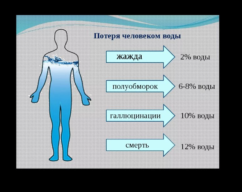 Представьте, что сейчас воды в квартире/доме нет, реки и ручьи высохли, а океаны превратились в сухие долины. Какова ваша реакция? И что еще более важно, как долго вы сможете выживать? При высокой окружающей температуре «взрослый человек теряет от 1 до 1,5 литров пота в час», - пишет для Scientific American Рэндалл Пэкер, биолог из Университета Джорджа Вашингтона, округ Колумбия. В нагретой солнцем машине или у спортсменов, которые много тренируются в жаркую погоду, может быть обезвоживание, перегрев и смерть наступит в течение нескольких часов ».