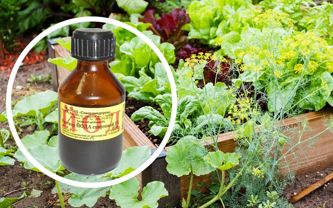 Обширное применение в народных методах, применимых на огороде, получил раствор йода.