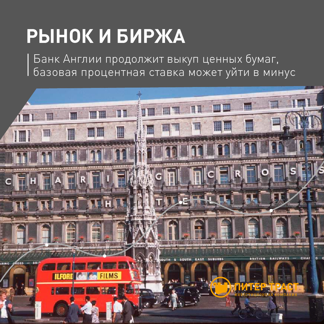 Банк Англии в ближайшее время намерен выделить дополнительные 100 млрд фунтов стерлингов на программу выкупа гособлигаций и корпоративных бондов с целью обеспечения стабильности финансовых рынков в период крупных государственных заимствований. Предполагается, что программа закупок, в которую уже вложено 645 млрд фунтов, продлится как минимум до осени.