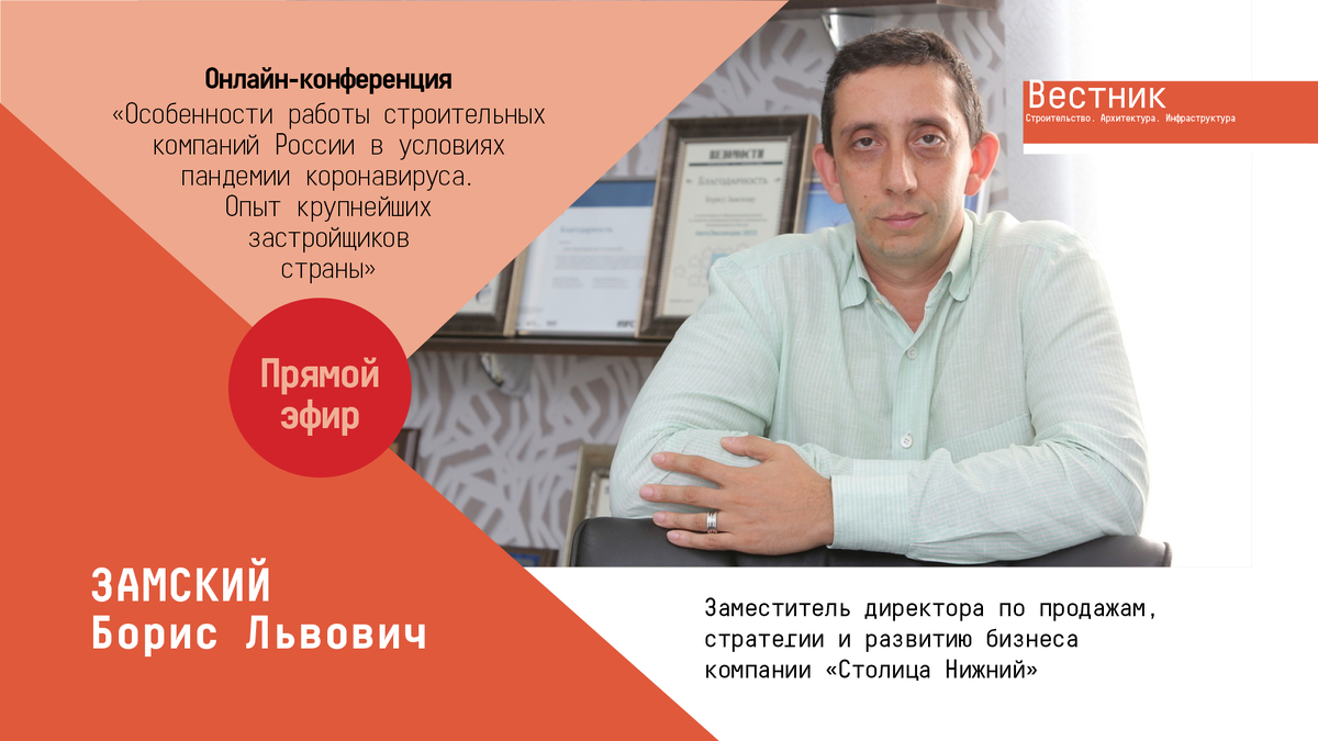 Ситуация с коронавирусом не сильно повлияла на темпы строительства в Нижнем Новгороде. Такое мнение высказал заместитель директора по продажам, стратегии и развитию бизнеса компании «Столица Нижний» Борис Замский во время онлайн-конференции «Особенности работы строительных компаний России в условиях пандемии коронавируса. Опыт крупнейших застройщиков страны», проведенной отраслевым журналом «Вестник. Строительство. Архитектура. Инфраструктура». – Надо оговориться, что каждый регион имеет свои особенности, которые определяются соотношением спроса и предложения, поэтому реагируют по-разному, – сказал Борис Замский. – В Нижнем Новгороде очень быстро отреагировали и власти, и профессиональное сообщество, были разработаны регламенты строительных работ. Эти действия, по словам Бориса Замского, немного усложнили строительные процессы и увеличили себестоимость, однако не позволили остановиться стройке. – С первых дней карантина мы продолжили электронные продажи, и их процент вырос, – коммен