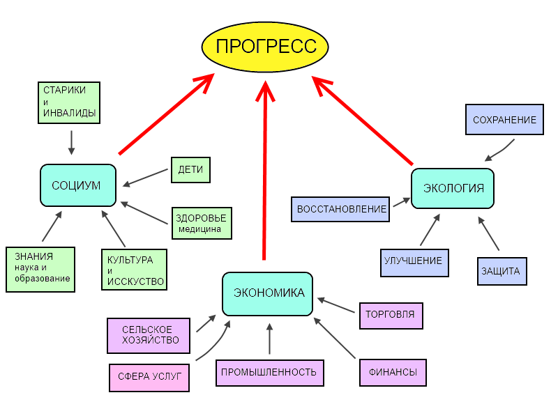 Прогресс государства зависит от равномерного развития трех равнозначных составляющих: экономики, социальной сферы и экологии.