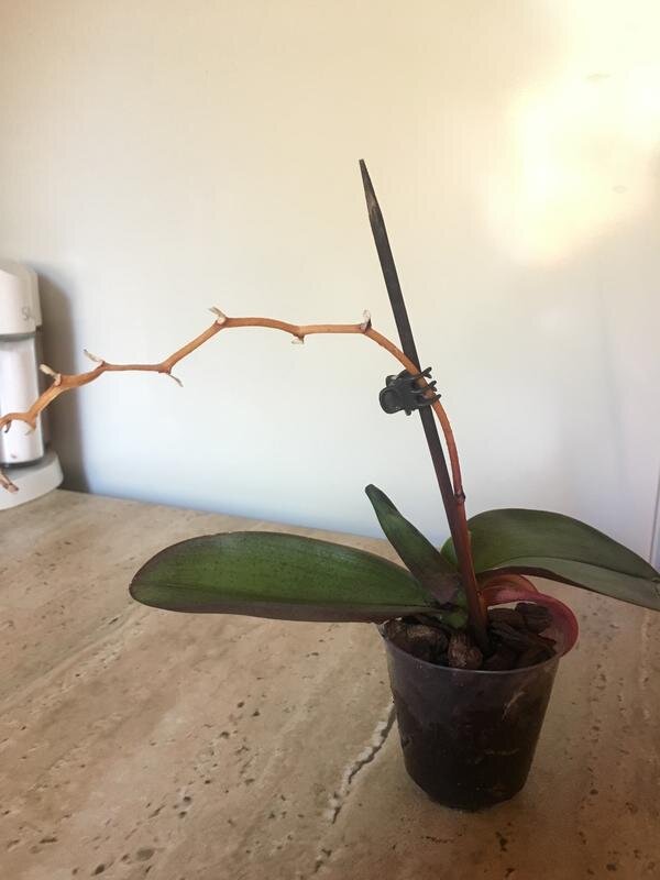 У меня дома живут 3 орхидеи фаленопсис. Обычно после цветения орхидеи отсушивали свои цветоносы, дальше оставалось их отрезать и ждать появления нового цветоноса. Но на этот раз она скинула цветки, а цветоносы не отсушила. Ну, думаю, где-то я читала, что с этого цветоноса могут появиться новые цветки. Но прошло полгода, а орхидеи так и стоят со своими некрасивыми палками (так я назвала цветонос). И нового цветоноса тоже не дают. Наступило лето, и я стала разбираться, как же заставить цвести орхидею? Не отрезать же зелёный цветонос! Оказывается, чтобы цветонос начал доращивать цветы, нужно обрезать цветонос по последней почке, из которой был цветок! Таким образом вы пробуждаете спящие почки цветоноса Так я и поступила со всеми тремя своими орхидеями. И через несколько дней из спящих почек начали расти цветоносы! И мало того, все орхидеи дали по новому цветоносу из пазухи листьев!! Если вы уже пробовали таким образом отрезать цветонос, но орхидея не начала доращивать цветы, я думаю, ва