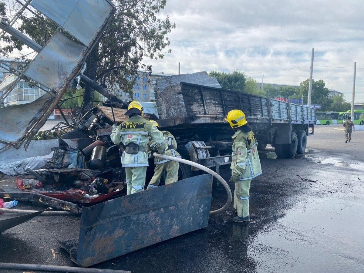 Узбекистан, Ташкент – АН Podrobno.uz. В Ташкенте грузовик врезался в рекламный щит и находившийся рядом железобетонный бордюр. Водитель погиб от возгорания в кабине, находившийся рядом молодой человек – скончался в больнице, сообщает корреспондент Podrobno.uz. "18 июня около 06:00 на Ташкентской кольцевой автомобильной дороге рядом с кафе "Дилшод" водитель грузового автомобиля "КамАЗ" 38-летний Мунис И. совершил столкновение с установленным на обочине дороги рекламным щитом. В результате ДТП в салоне автомобиля произошло возгорание. Водитель от полученных травм скончался на месте", – отметили в ГУВД.
