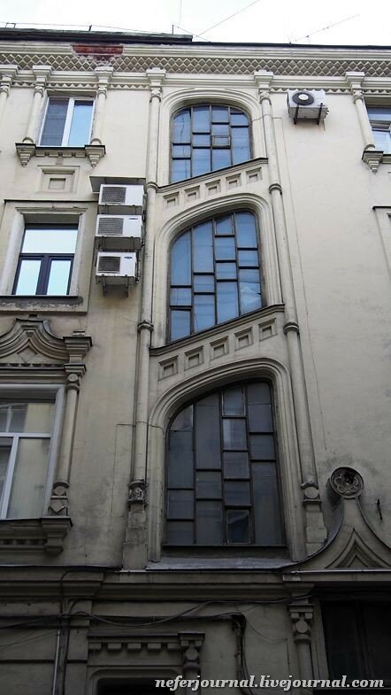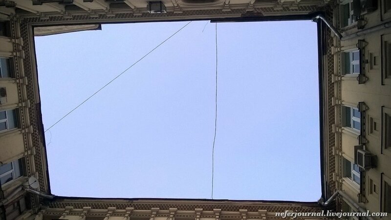 На заглавной фотографии двор-колодец. Таких немного в Москве. Это подворье Саввино-Сторожевского монастыря. Здание уникальное и эффектное. Оно построено в 1905-1907 годах по проекту архитектора Кузнецова. В советское время в здании подворья располагалась одна их первых киностудий России. Через арку можно попасть в соседний дворик.