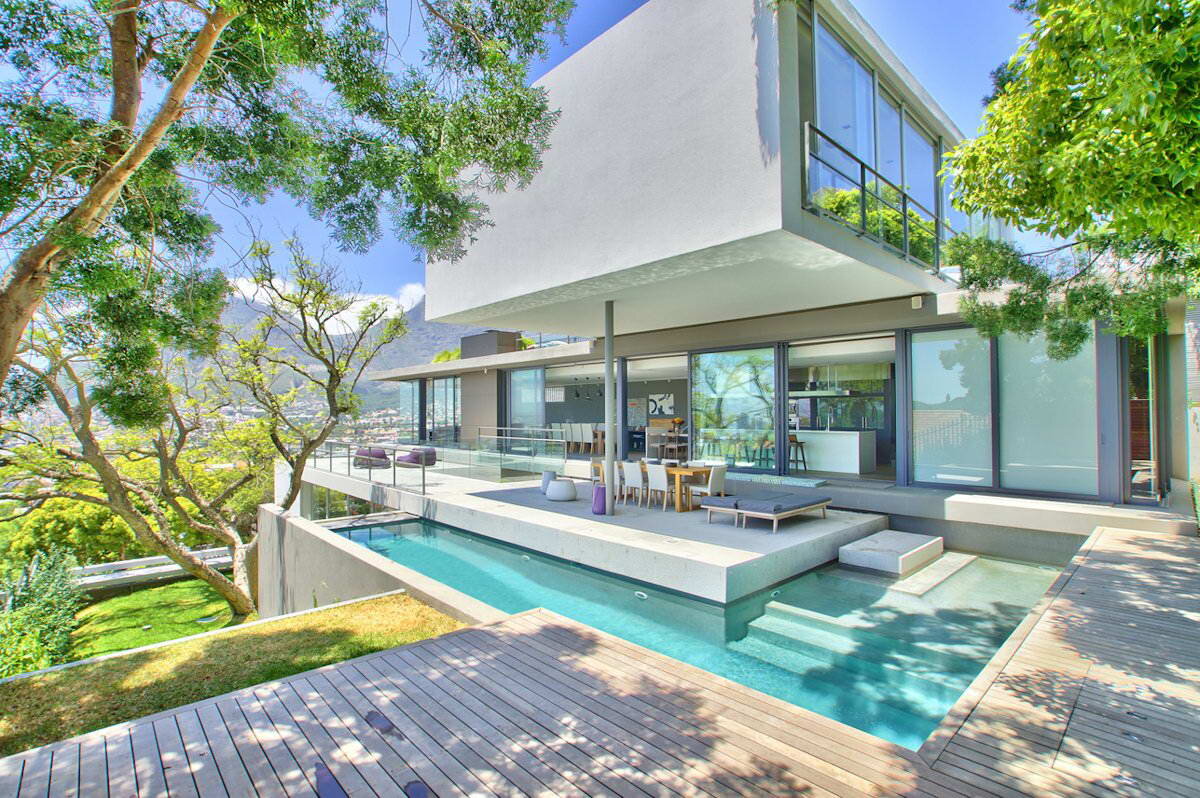 Эта роскошная современная вилла построена на крутом склоне в пригороде Кейптауна.