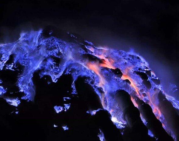 Чтобы увидеть что-то совершенно необычное и завораживающее, нам необходимо отправится в Индонезию на остров Ява, где расположен вулкан Иджен. Это действующий вулкан с диаметром кратера в 1,000 метров. Последний раз извержение происходило в 2002 году. ⠀ Комплекс Иджен насчитывает несколько вулканических объектов, самым высоким из которых является стратовулкан Мерапи высотой в 2,803 метра. Вулкан крайне популярен среди туристов, и в этом заслуга не только его масштабов или истории. Нет. У него есть еще одно уникальное свойство, которым не обладают другие вулканы нашей планеты. ⠀ Днем все кратеры вулкана ничем не отличаются, но при наступлении ночи один из них становится совершенно не похожим на своих братьев. По его склонам стекает жидкая сера, которая в ночное время суток приобретает синеватый цвет и существенно отличается от классической лавы, которую мы привыкли видеть. Также вулкан имеет фумарольную активность (трещины на поверхности вулкана, сквозь которые вырывается горячий газ).