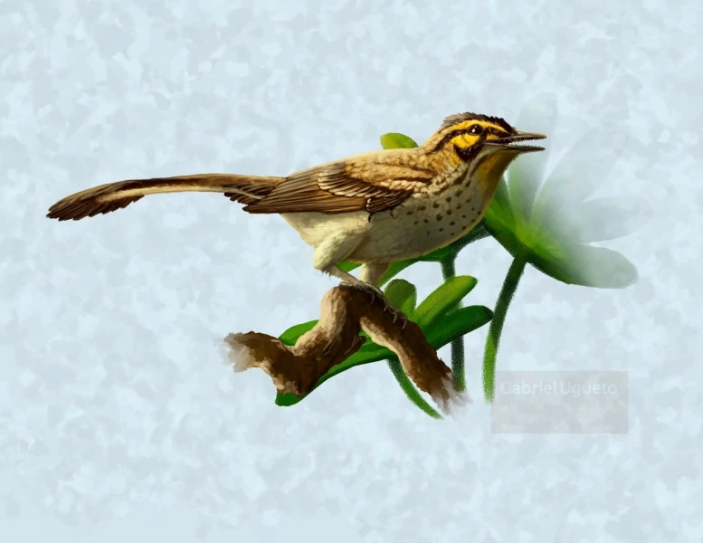 Чего мы о гигантах, да о гигантах пишем? Среди малышей тоже есть много чего интересного! Например, буквально в этом году был обнаружен самый маленький динозаврик размером с колибри. И имя ему - окулудентавис. Окулудентавис является самым мелким известным динозавром, как уже было сказано, его размеры сопоставимы с колибри. Всего 7 см в длину. Причём этот динозаврик занимал уникальную биологическую нишу - при таких мелких размерах он оставался хищником на некрупных насекомых. Внешне окулудентавис напоминал воробья с более длинным хвостом (он как-никак динозавр), коготками на крыльях и зубками. Обитала данная рептилия на территории Бирмы. Известна только по одному удачно сохранившемуся образцу - голове. Строение глаз указывает на дневной образ жизни окулудентависа, а строение его пасти указывает на хищный образ жизни. Зубы были острыми, похожими на зубы обычных тероподов, однако наблюдаются несвойственные для динозавров сращивания зубов между собой (акродонт) и сращивание зубов с внутренн
