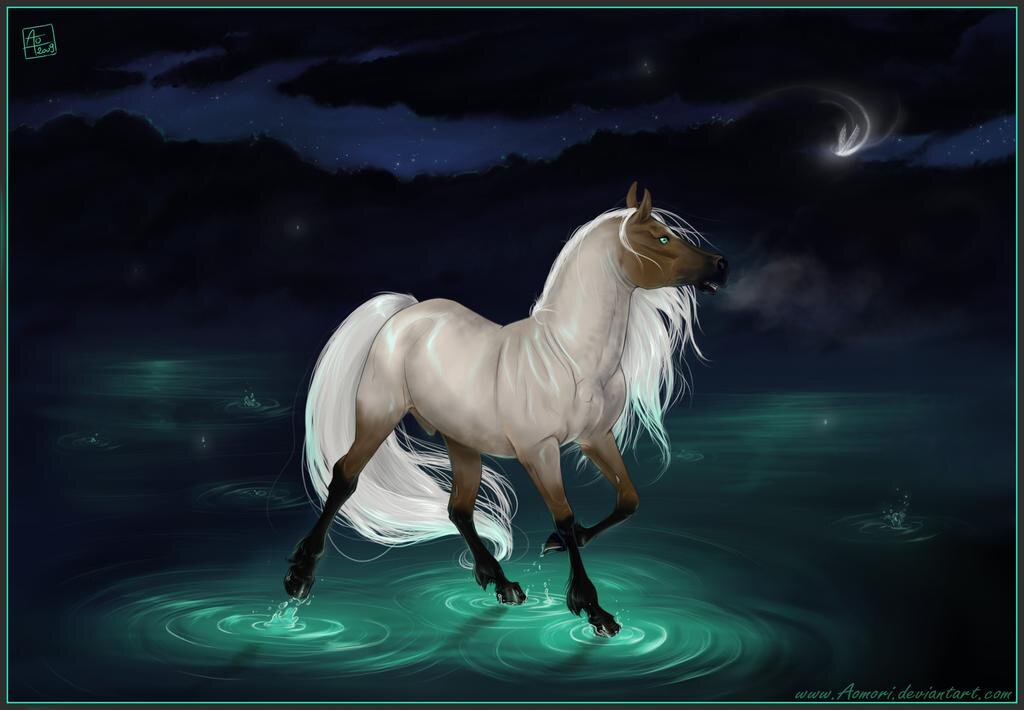 И наконец, появилось что-то, похожее на большой зеленый остров, окруженный бесконечным множеством блуждающих разноцветных облаков. Среди этой сказочной красоты стоял он – волшебный конь такой большой, что занимал половину острова. Его длинные пушистые с золотым блеском грива и хвост были в движении, будто ими играл сильный ветер.